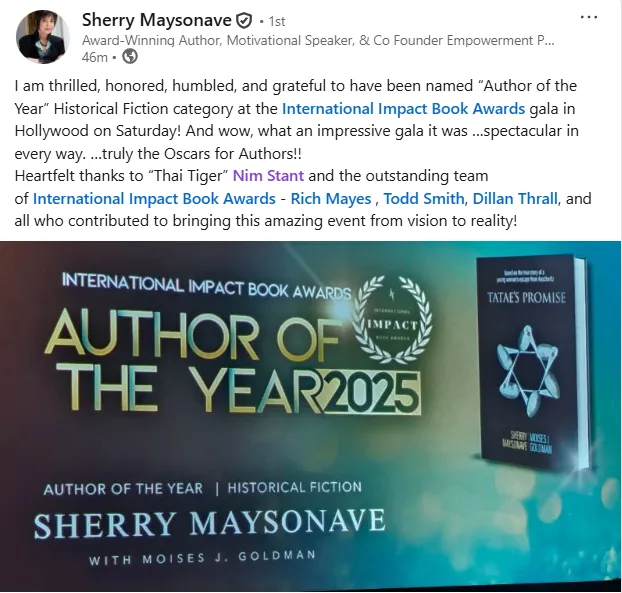 As a finalist, you will be invited to attend the Hollywood Grand Gala in October 2026, where the selected Author of the Year will be announced and celebrated. This prestigious event gathers top authors, publishers, and industry professionals for an evening of inspiration and recognition.